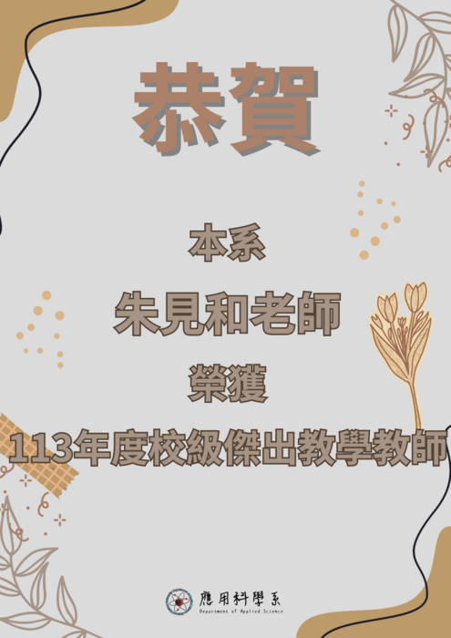 【應科系】賀!本系朱見和老師榮獲113年度院級傑出教學教師!
